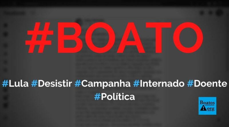 BoatosOrg: PT está preocupado com Lula ser internado ou desistir da candidatura por problemas de saúde