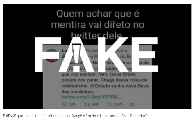 Fato ou Fake: É #FAKE que Lula fez post defendendo fim do cristianismo