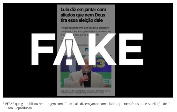 Fato ou Fake: É #FAKE print em que Lula diz em jantar com aliados que ‘nem Deus tira essa eleição dele’