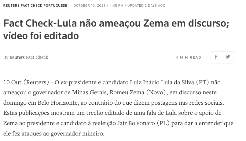 Reuters Fact-Check: Lula não ameaçou Zema em discurso; vídeo foi editado