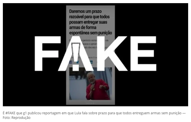 Fato ou Fake: É #FAKE que g1 publicou reportagem afirmando que Lula dará prazo para que todos entreguem armas