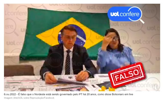 UOL Confere: Nordeste não está sendo governado pelo PT há 20 anos, como disse Bolsonaro