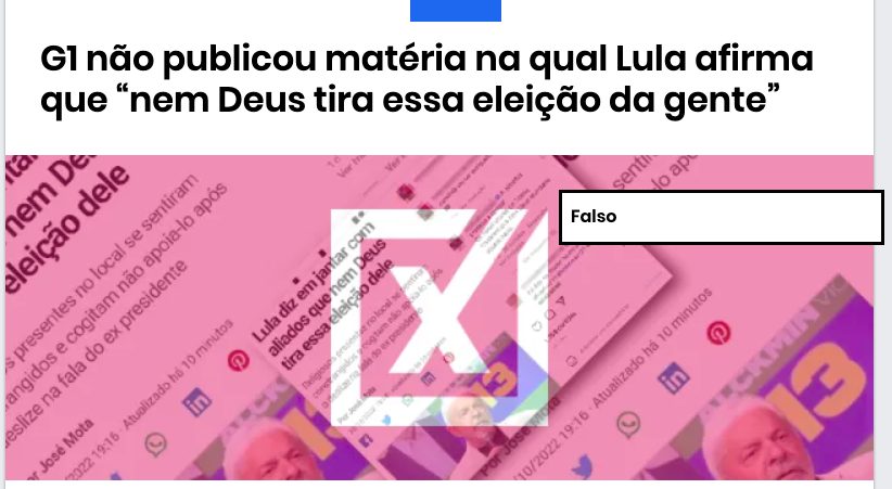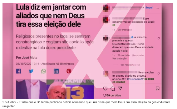 Projeto Comprova: G1 não publicou matéria na qual Lula afirma que “nem Deus tira eleição da gente”