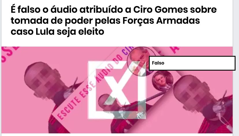 Projeto Comprova: É falso o áudio atribuído a Ciro Gomes sobre tomada de poder pelas forças armadas caso Lula seja eleito
