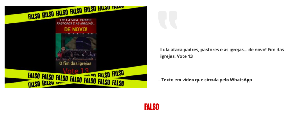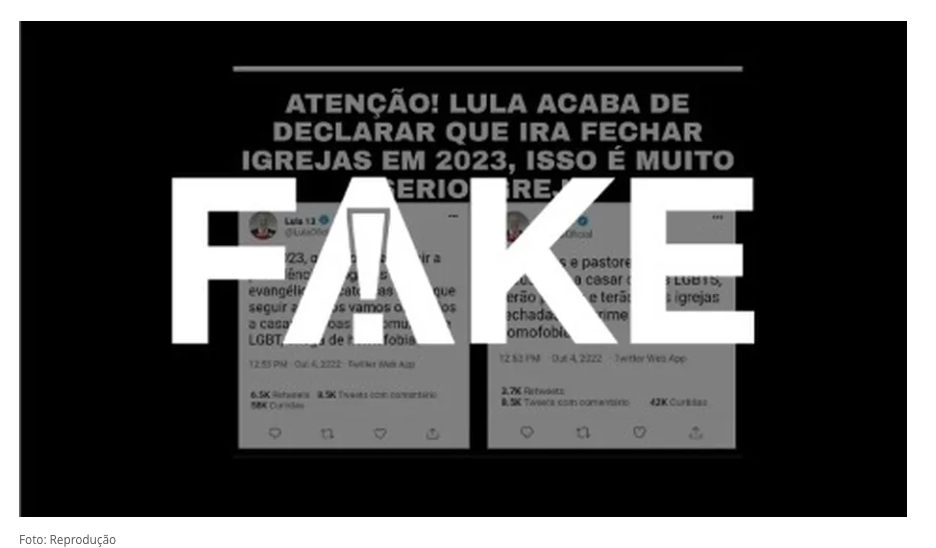 Fato ou fake: É FAKE mensagem que diz que Lula declarou que irá fechar igrejas em 2023