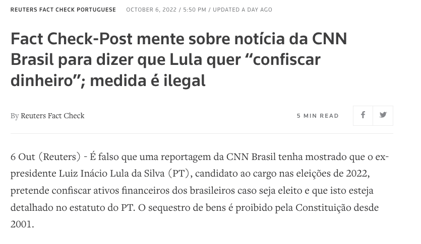 Reuters Fact Check: Post mente sobre notícia da CNN Brasil para dizer que Lula quer “confiscar dinheiro”; medida é ilegal