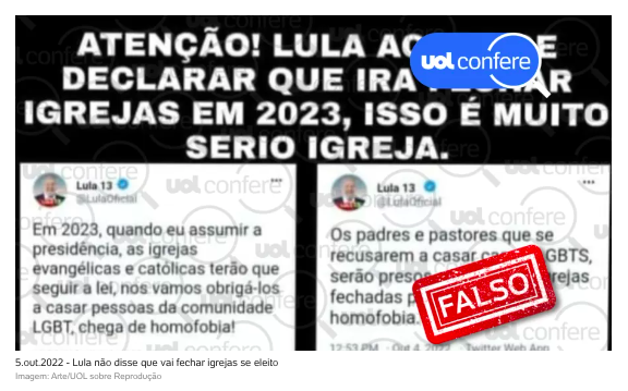 UOL Confere: Lula não declarou no Twitter que vai prender padres e fechar igrejas