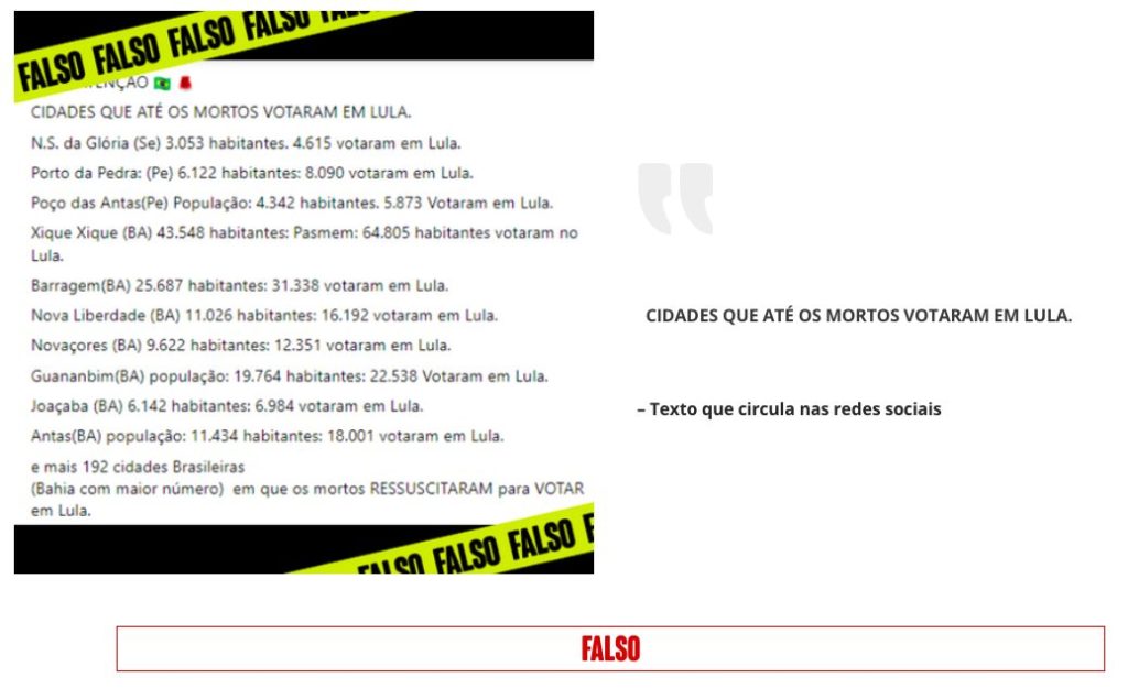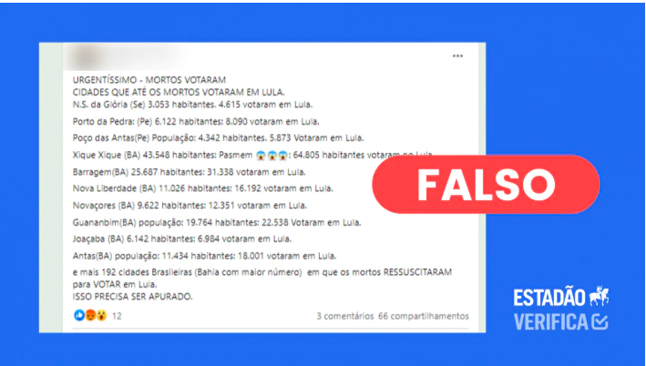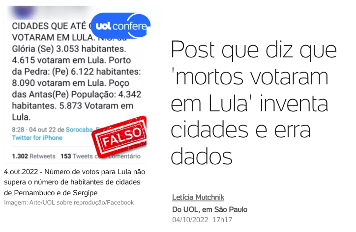 UOL Confere: Post que diz que “mortos votaram em Lula” inventa cidades e erra dados