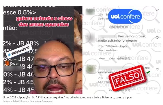 UOL Confere: É falso que virada de Lula foi “ditada por algoritmo”, como diz post