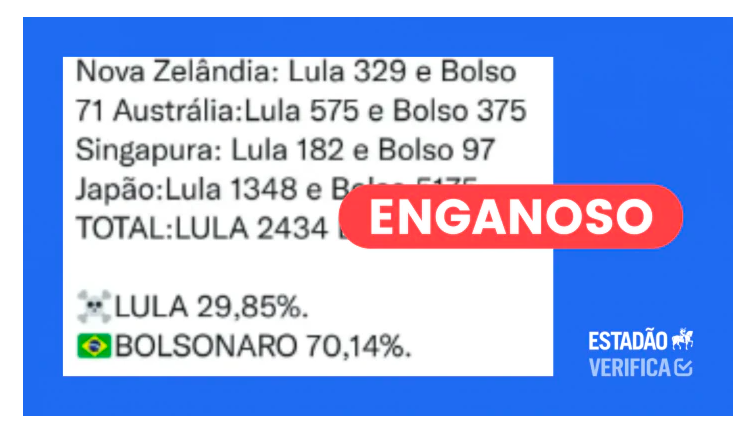 Estadão Verifica: Posts divulgam dados imprecisos de votação no exterior. Veja desempenho de Lula e Bolsonaro