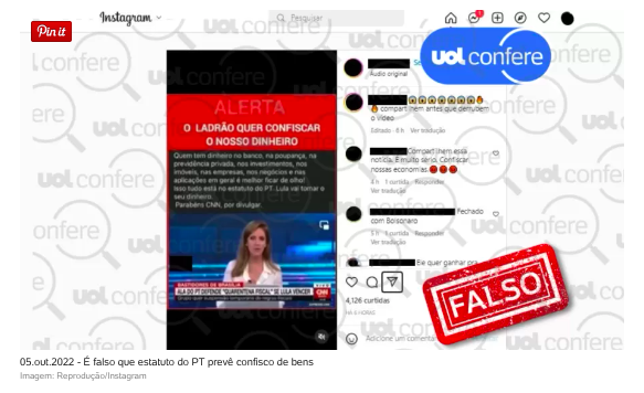 UOL Confere: Posts resgatam notícia falsa de que estatuto do PT prevê confisco de bens