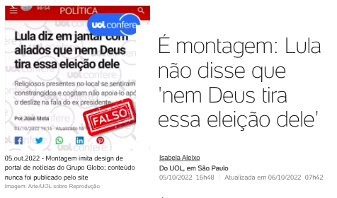 UOL Confere: É montagem: Lula não disse que “nem Deus tira essa eleição” dele
