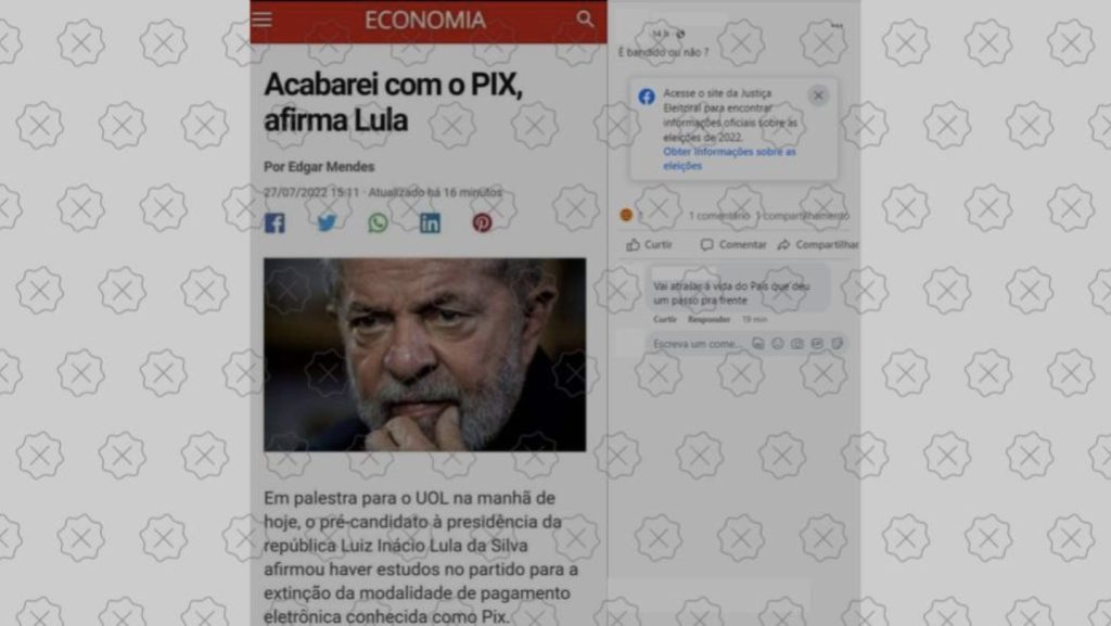 Aos Fatos: Lula não disse que acabará com o Pix se for eleito