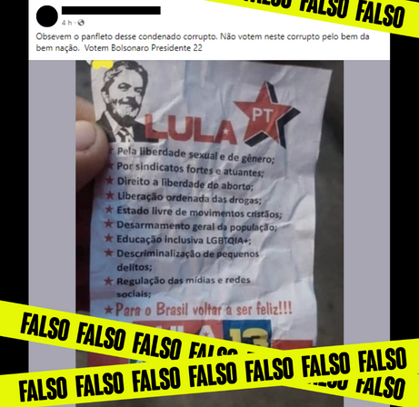 Agência Lupa: Panfleto com supostas propostas de Lula não é oficial e traz informações falsas