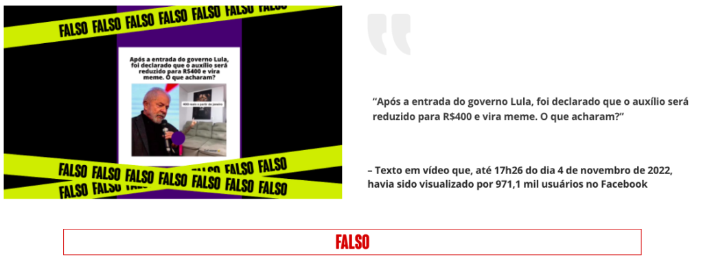 Agência Lupa: É falso que governo Lula declarou que baixará Auxílio de R$ 600 para R$ 400.