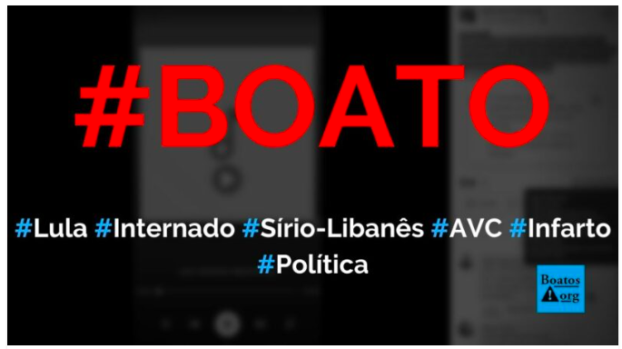 Boatos.org: Lula foi internado no Sírio-Libanês depois de sofrer um AVC (ou infarto).