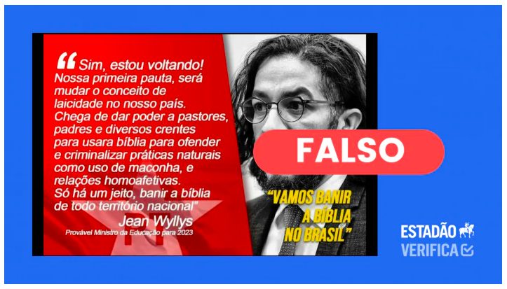 Estadão Verifica: É falso que Jean Wyllys tenha dito que pretende banir a Bíblia do Brasil