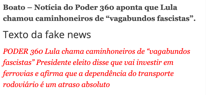 BoatosOrg: Fake news: Lula chama caminhoneiros de vagabundos fascistas