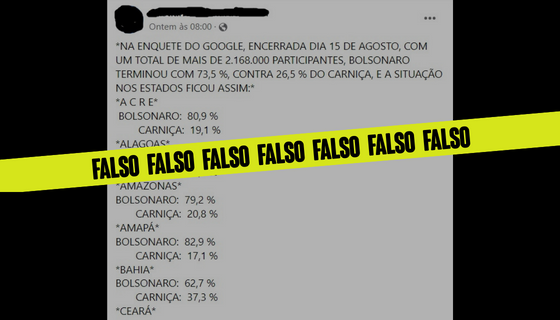 Agência Lupa: É falso que Google produziu enquete que mostra liderança de Bolsonaro