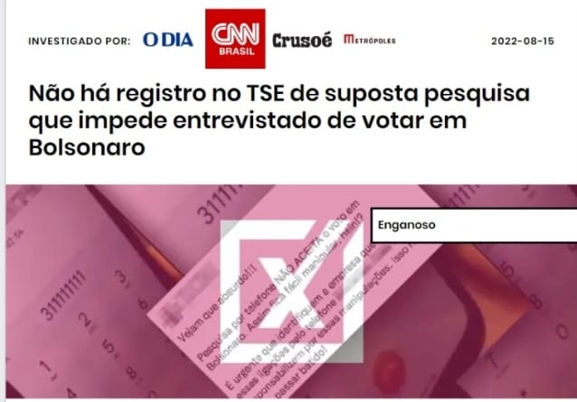 Projeto Comprova: Não há registro no TSE de suposta pesquisa que impede entrevistado de votar em Bolsonaro