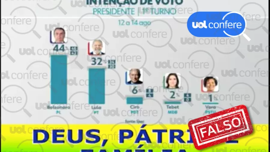 Uol Confere: É montagem vídeo que mostra pesquisa do Ipec no JN com Bolsonaro à frente