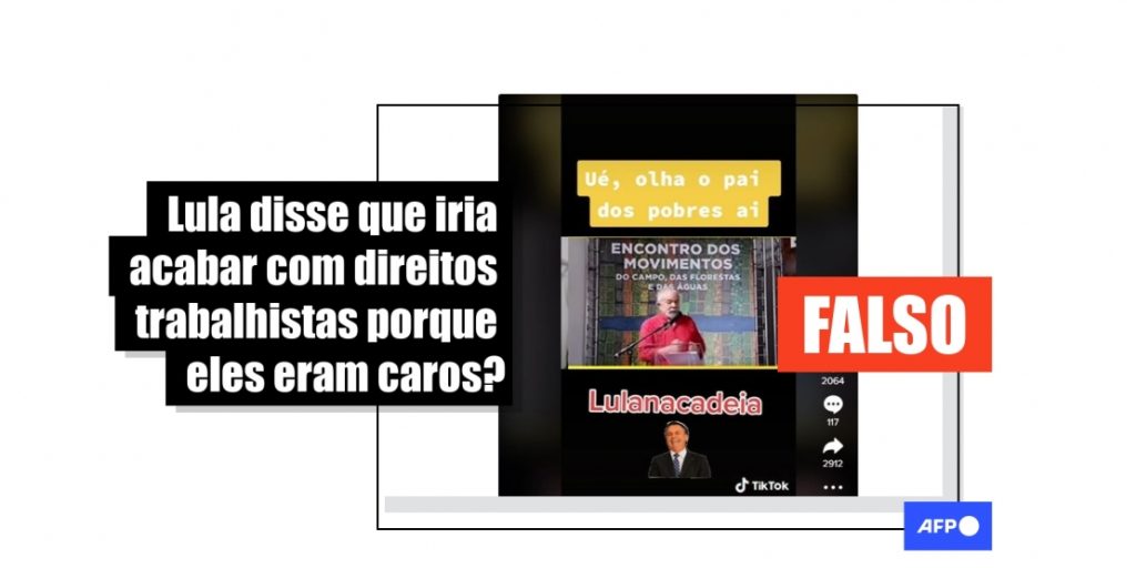 AFP Checamos: Lula não disse que é preciso acabar com férias e 13º por serem muito caros; vídeo foi manipulado