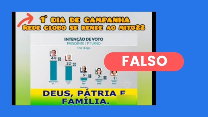 Fato ou Fake: É #FAKE vídeo que mostra Bolsonaro na liderança da pesquisa Ipec divulgada em 15 de agosto de 2022