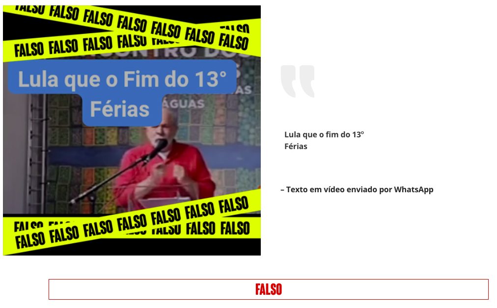 Agência Lupa: É falso que Lula disse que trabalhadores não devem ter férias e 13º salário