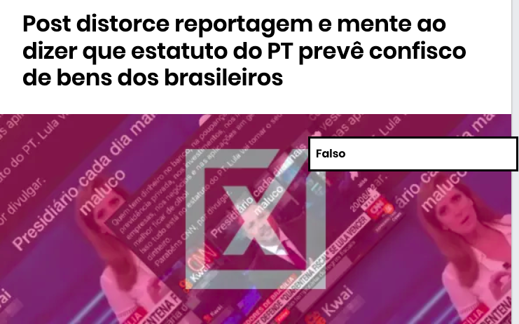 Projeto Comprova: Post distorce reportagem e mente ao dizer que estatuto do PT prevê confisco de bens dos brasileiros.