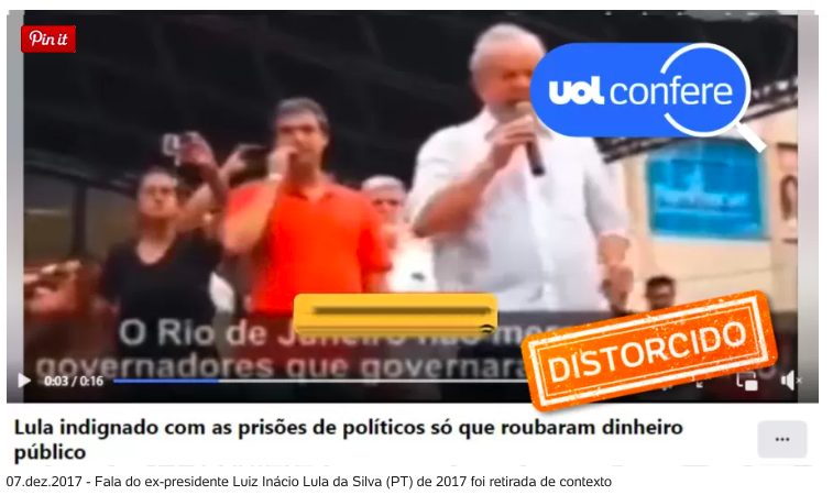 UOL Confere: Publicação distorce fala de Lula sobre prisão de ex-governadores do Rio