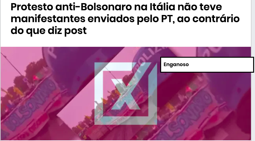 Projeto Comprova: Protesto anti-Bolsonaro na Itália não teve manifestantes enviados pelo PT, ao contrário do que diz post
