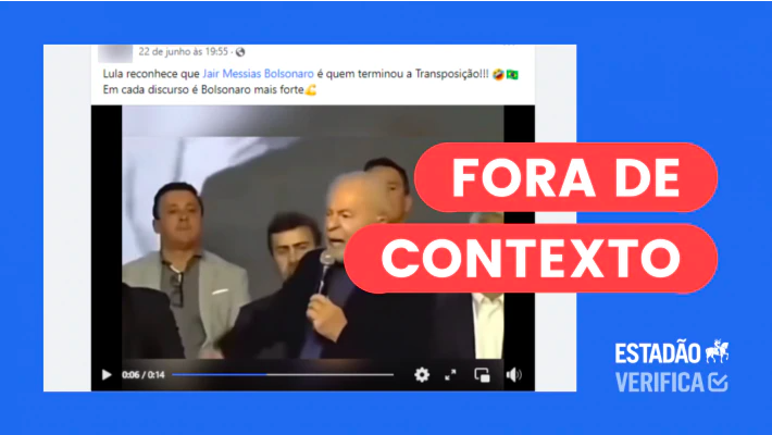 Postagem edita fala de Lula para parecer que petista reconheceu que Bolsonaro terminou obras da Transposição