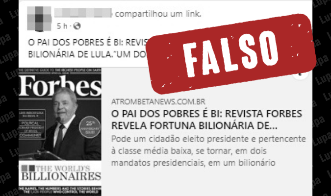 Agência Lupa: #Verificamos: É montagem capa da Forbes que mostra Lula como bilionário