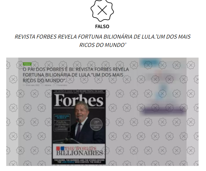 Boatos.org: Lula é capa da Forbes em 2022 e tem fortuna estimada em 2 bilhões de dólares #boato