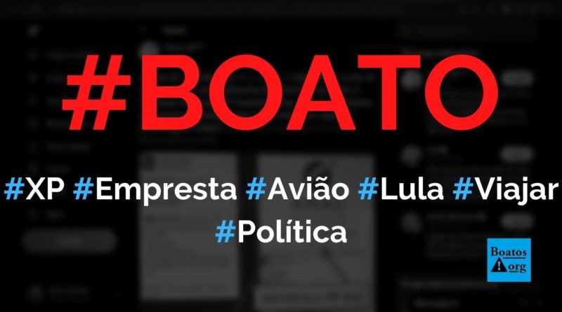 Boatos.org: XP emprestou avião para Lula viajar pelo Brasil #boato