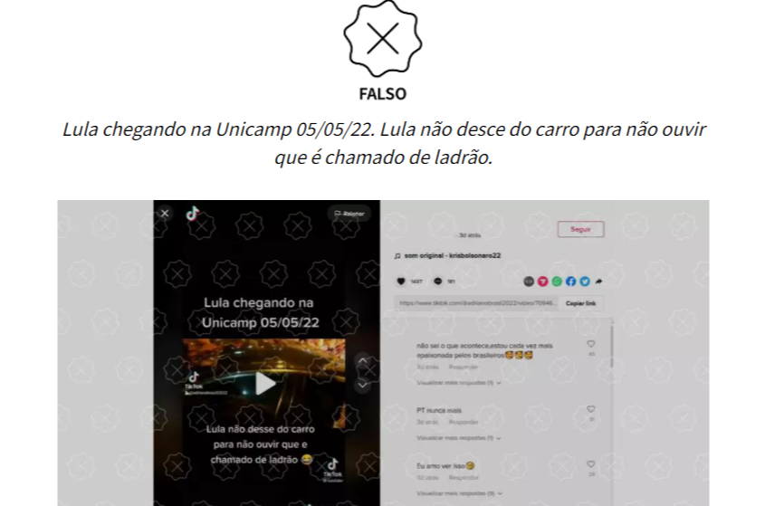 Projeto Comprova: É enganoso e está fora de contexto vídeo no TikTok em que Lula chama colaborador da Petrobras de corrupto
