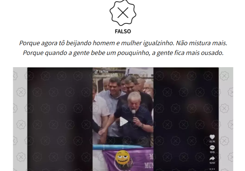 Aos Fatos: Lula não disse que beija homens e mulheres quando bebe e fica ‘mais ousado’