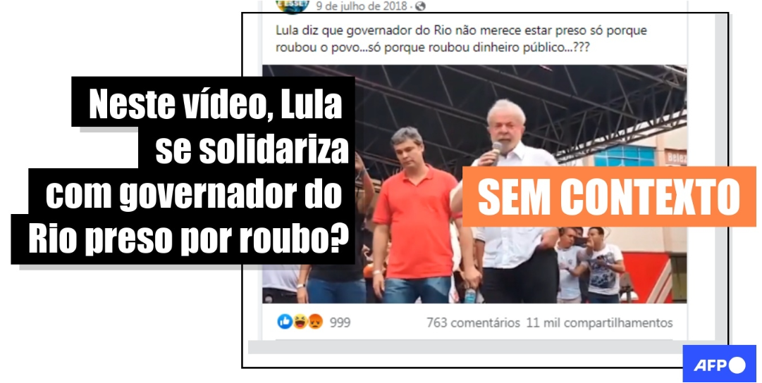 AFP Checamos: Vídeo de Lula é tirado de contexto para parecer que criticava a prisão de ex-governador carioca