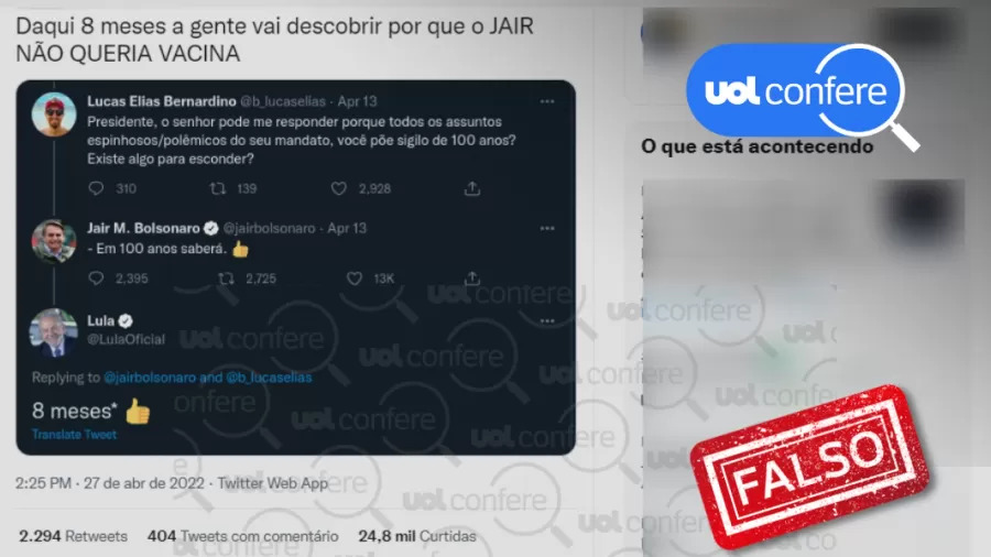 Aos Fatos: É falso tweet em que Lula responde a Bolsonaro sobre sigilo de cem anos