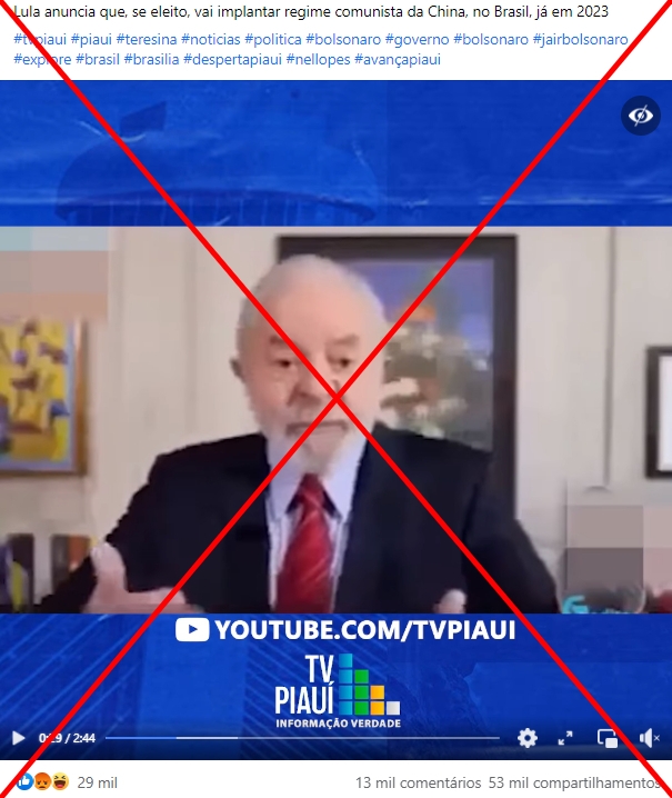 Lula não disse que vai implementar comunismo no Brasil se for reeleito; vídeo foi manipulado