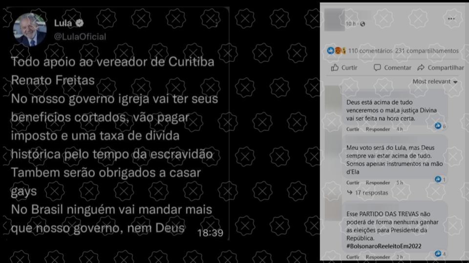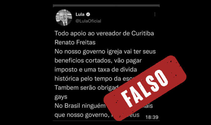 Boatos.org: Lula diz, em tuíte de apoio a Renato Freitas, que “nem Deus vai mandar mais do que ele” e que “igrejas terão benefícios cortados” #boato