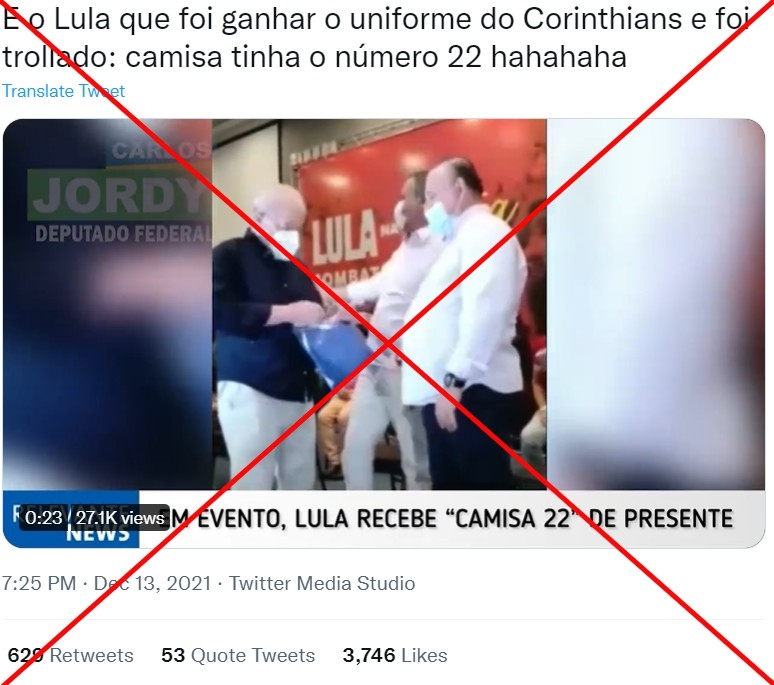 Agência Lupa: Número 22 em camisa de futebol dada a Lula é referência a 2022, não a partido de Bolsonaro