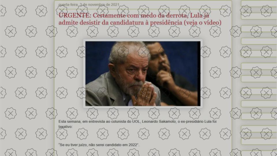 Boatos.org: Lula desiste de ser candidato nas eleições de 2022 #boato