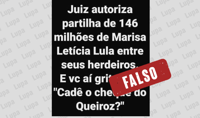 Agência Lupa: É falso que Marisa Letícia deixou 146 milhões para seus herdeiros