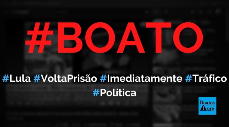 Boatos.org: Não é verdade que Lula volta para prisão imediatamente por causa de denúncia por narcotráfico #boato