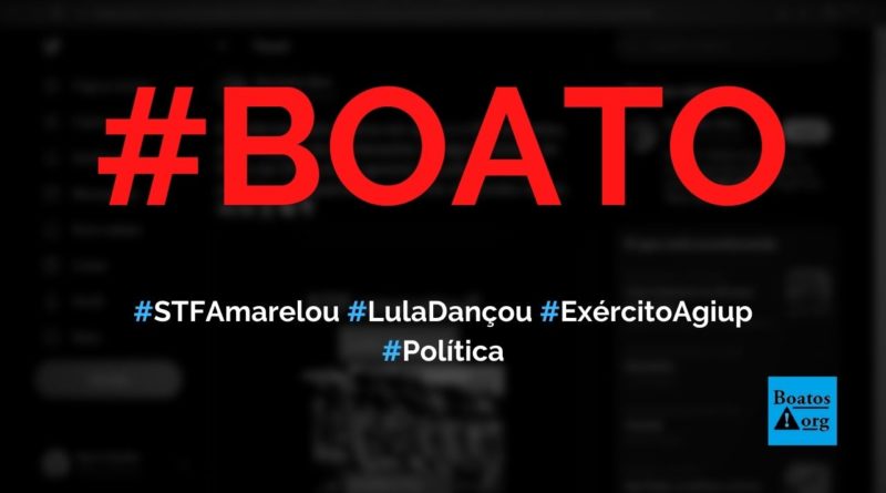 Boatos.org: STF “amarelou” porque Exército agiu e cogita barrar candidatura de Lula (que dançou) #boato