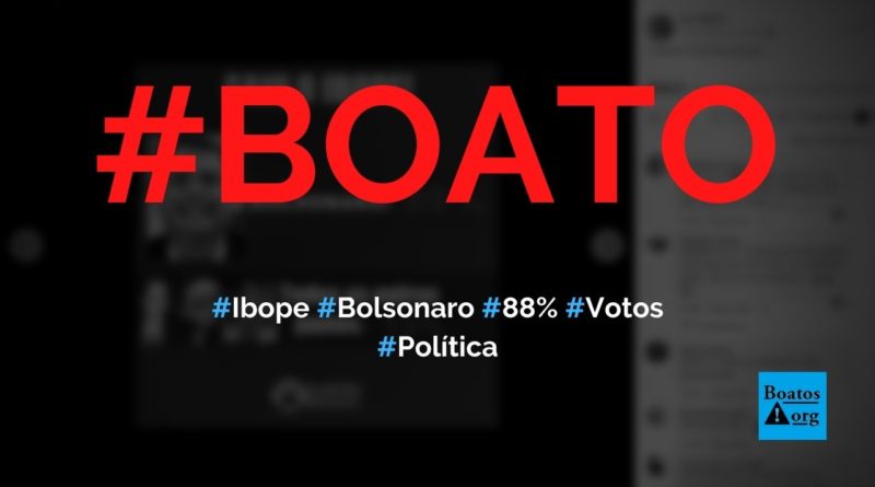 Boatos.org: Saiu o Ibope! Bolsonaro: 88%, todos os outros juntos (Ciro, Marina e Lula): 12% #boato
