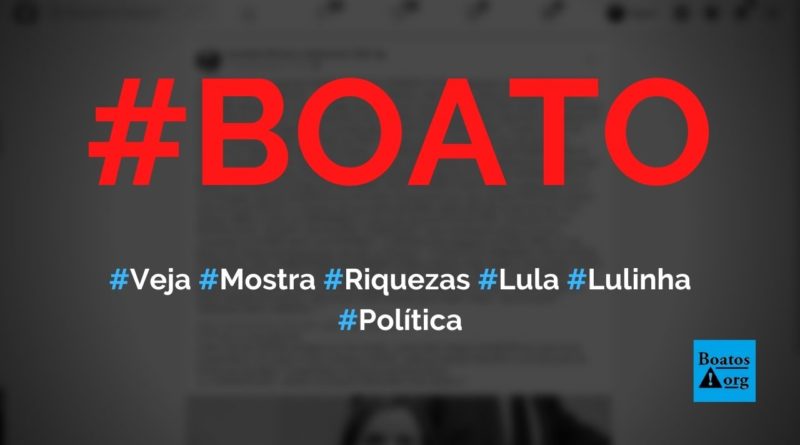Boatos.org: Nenhuma edição da Veja mostra riquezas de Lulinha, ao contrário do que afirma post falso