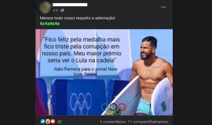 Aos Fatos: Ítalo Ferreira não disse ao The New York Times que seu maior prêmio seria ver Lula na cadeia