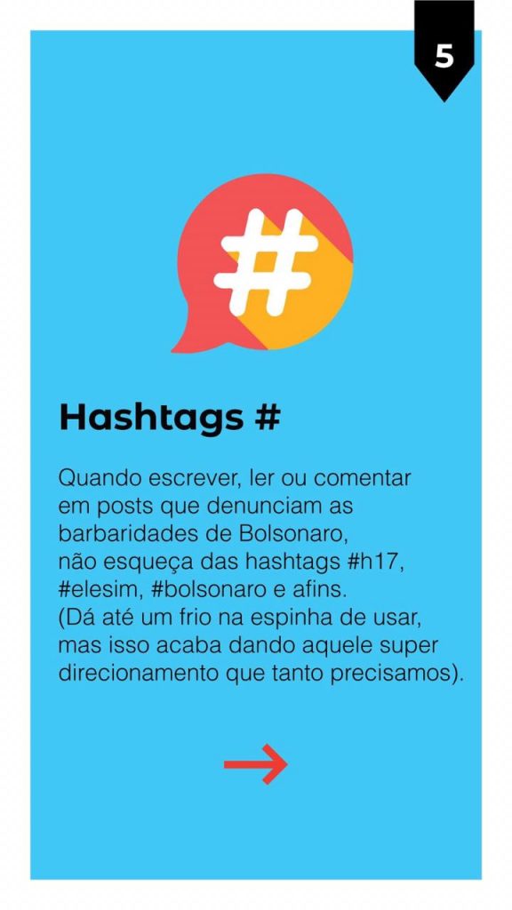 Nesta reta final da campanha é muito importante que todos e todas saibam como usar seus perfis nas redes sociais para dar mais visibilidade às propostas de Fernando Haddad. É super importante dar visibilidade ao grupo democrático em torno da candidatura que representa a continuidade e ampliação das políticas que transformaram o país.